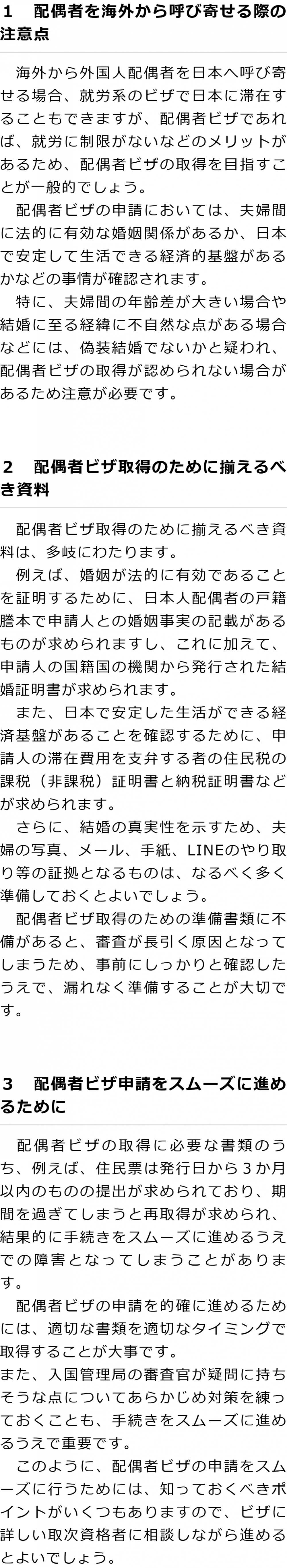 トップこんなお悩みはありませんか?配偶者を海外から呼び寄せたい 階層構造▼ こんなお悩みはありませんか?(目次) 配偶者を海外から呼び寄せたい こんなお悩みはありませんか?(目次)こんなお悩みはありませんか?トップ配偶者を海外から呼び寄せたい配偶者ビザへ切り替えたい配偶者ビザを更新したい短期滞在ビザから配偶者ビザに変更をしたい留学ビザから配偶者ビザに変更したい配偶者ビザを取得したいが、何をすればいいのか分からない離婚歴があり申請が通るか不安夫婦の年齢に差があり申請が通るか不安収入が少ないため申請が通るか不安ネットで知り合ったが、偽装結婚の疑いからビザが得られるか不安オーバーステイ・犯罪歴があるがどうすればいいか国籍別の結婚手続きについて知りたい 受付時間 平日 9時~21時、土日祝 9時~18時 夜間・土日祝の相談も対応します (要予約) 所在地 〒060-0808 北海道札幌市北区北八条西4‐1-1パストラルビルN8 2F 0120-41-2403 お問合せ・アクセス・地図